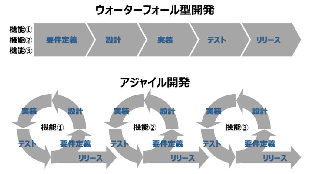 これに対しアジャイル開発は、小さく作って検証し、改善を繰り返すスタイルを採用します。これにより、顧客や市場のニーズ変化に素早く対応できるのが特徴です。